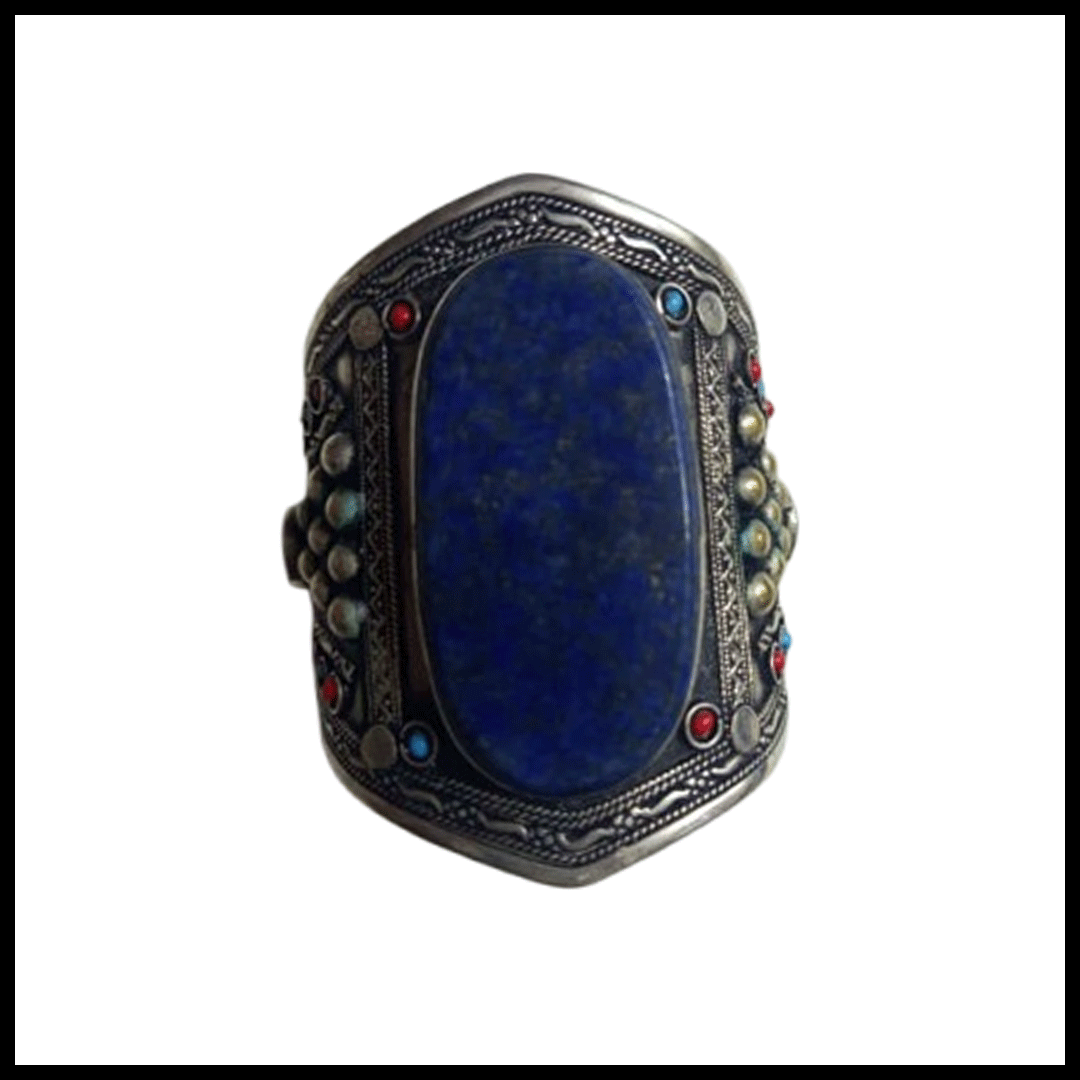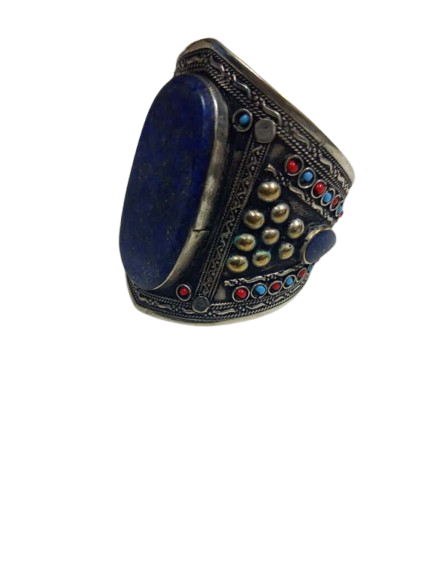 - A luxurious assortment of collectible and rare, ethnic,tribal arm bands. Afghan silver engraved silver wristbands . Real silver is liked as a metal of humility. Best, exceptional ,handcrafted wristbands. Slick, delightful, customary ancestral, pounded surface and long cuff wrist bands for ladies. Blue stones makes it more appealing. Bright adornments joins new,old,metal,beads,coins,stones and texture. Treasure Pakistan provides you with various plans of metal sleeve popular things for party and extraordinary occasions.Please note: These products are handmade and/or naturally produced. Some variance in pattern placement, minor size variation and colour variations may occur and may look slightly different from the photo’s.