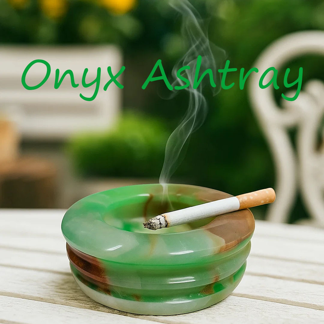 - Elegant, sturdy, simple and traditional ashtray. these onyx ashtrays are made using the finest marble, carved and then polished to enhance the natural details of the stone. designed to prevent the Ash from flying off. onyx is a grounding and protective crystal that helps to calm your fears. natural onyx ashtray. decorative ashtrays for cigarettes, elegant onyx for your office and home gifts. hand carved. available in different colors. best gift for smokers. Easily washable and scorch proof. vintage high quality. Unique and elegant. the color swirls you can see on the ashtrays are natural. each onyx stone is distinct from other. start conversations in your home and enhances your smoking. best home, office decor. Perfect for indoor, outdoor use and coffee tables and patios. Vast selection of ashtrays available.Please note: These products are handmade and/or naturally produced. Some variance in pattern placement, minor size variation and color variations may occur and may look slightly different from the photo’s.