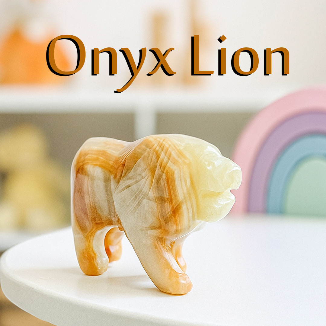 Elegant, sturdy, simple and traditional lion, these onyx lion are made using the finest marble, carved and then polished to enhance the natural details of the stone. Onyx is a grounding and protective crystal that helps to calm your fears. Natural onyx lion. Decorative lion for homedecor, elegant onyx for your office and home gifts. Easily washable and scorch proof. vintage high quality. Unique and elegant. The color swirls you can see on the lion are natural. Each onyx stone is distinct from other. Best for home & office decor. Perfect for indoor, outdoor use and coffee tables and patios.