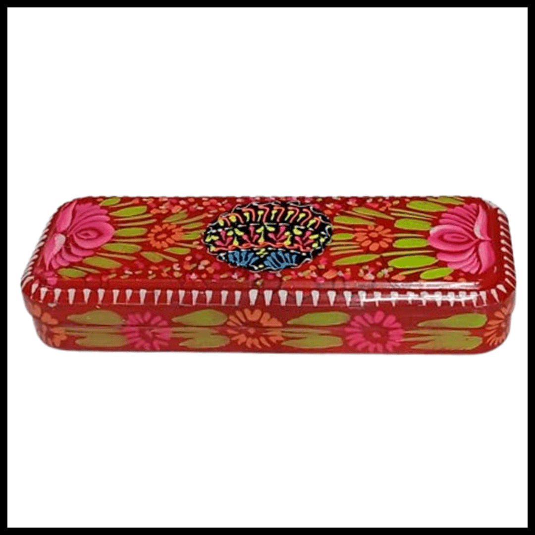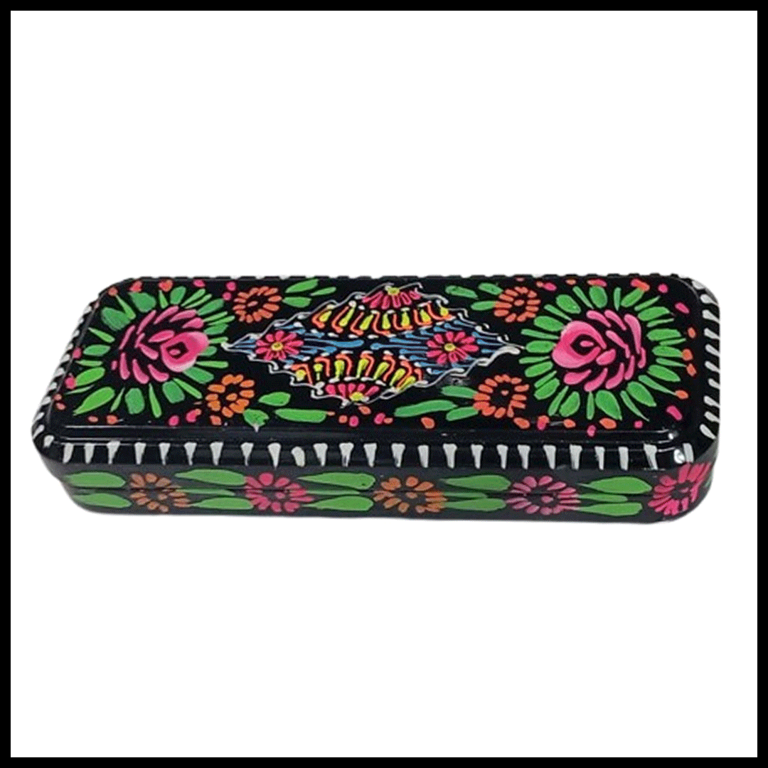 - Brighten up your desk with this beautifully handcrafted Truck Art Bundi Pencil Box, inspired by Pakistan’s vibrant cultural designs. Each piece is hand-painted with intricate patterns and bold colors, making it a perfect blend of art and functionality. The spacious interior easily holds pencils, pens, markers, and small stationery items. Its durable build ensures long-lasting use at school, office, or home. This unique pencil box also makes a thoughtful and artistic gift for kids and adults who love traditional craftsmanship.