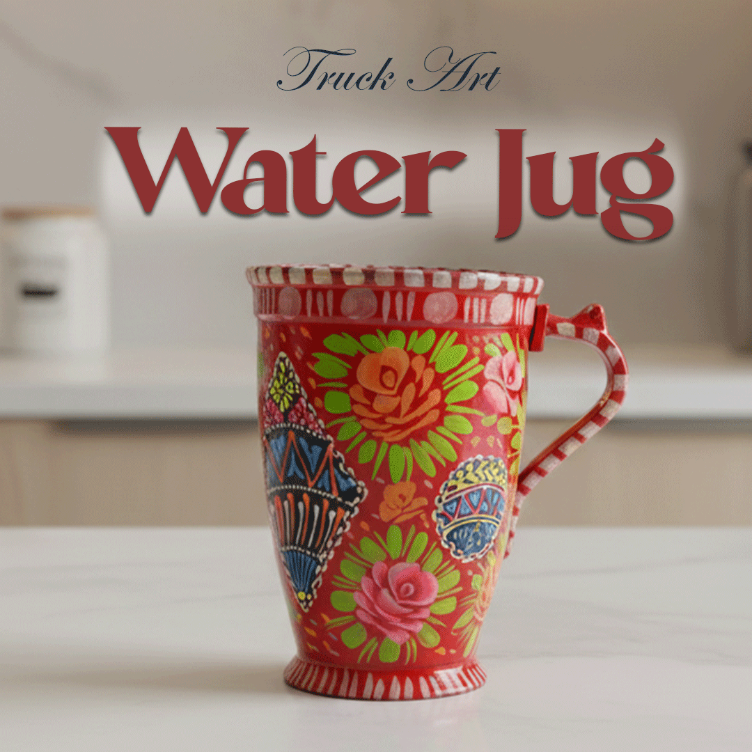 - Beautifully attractive hand painted metal water set that keeps water cold for a long time.Add some style to your drink ware by stunning colorful floral patterns. Intricately detailed with hand-painted patterns and add the finishing touch to your table setting.Available in several gorgeous designs.Perfect for water,juice or your favorite mocktail. Beautiful addition to any table.Washable and water resistant.Brighten up your meal times with this vintage hand-painted set.The detailing of painting and finishing is a joy to pour from and something to your display.Enjoy serving your guests in this utterly gorgeous set. For decoration or dining purpose.Best for gifts. Color me vary as all items are hand crafted. wide range have been designed to keep the trend of hand painted truck art alive.This classic hand printed jug and glasses will never go out of style.