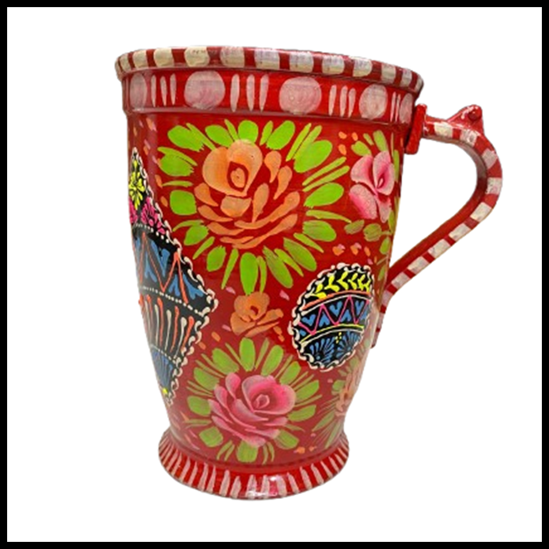 - Beautifully attractive hand painted metal water set that keeps water cold for a long time.Add some style to your drink ware by stunning colorful floral patterns. Intricately detailed with hand-painted patterns and add the finishing touch to your table setting.Available in several gorgeous designs.Perfect for water,juice or your favorite mocktail. Beautiful addition to any table.Washable and water resistant.Brighten up your meal times with this vintage hand-painted set.The detailing of painting and finishing is a joy to pour from and something to your display.Enjoy serving your guests in this utterly gorgeous set. For decoration or dining purpose.Best for gifts. Color me vary as all items are hand crafted. wide range have been designed to keep the trend of hand painted truck art alive.This classic hand printed jug and glasses will never go out of style.